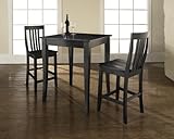 Finish:Black Constructed of solid hardwood and wood veneers, thethree piece pub/high dining set is built to last. Whether you are looking for dining for two, or just a great addition to the basement or bar area, this set is sure to add a touch of style to any area of your home. Features: Table: Dimensions: 32' Length x 32' Wdth x 36' Height Materials: Solid Hardwood & Veneer Cabriole Legs School House Stools: Dimensions: 18.5' Width x22.5' Back to Front x 24' SeatHeight Overall Height: 40' Material:Solid Hardwood Shaped back for comfort Hand rubbed, multi-step finish Constructed from solid hardwoods, veneers Choice of wood stain finishes Traditional style, decorative curved legs Stools: 18.5W x 22.5D x 40H inches Table: 32W x 32D x 36H inches