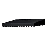8-Ft. Traditional Door Canopy, Color Ebony Here is our beautiful and durable (manufactured from heavy duty UV-resistant, marine-grade canvas and our decorative braids are 100% cotton) 8-ft. traditional style door canopy in ebony (color), which will provide you with many years (15-20 years with normal use) of beauty and shade. This awning is fully retractable - so you can decide whether you want to let the sun in or not - and easy to install on concrete, brick, wood, vinyl, or aluminum (it usually takes less than 35 minutes to install one and you'll receive complete instructions with your package). Better yet, we've include all of the parts you'll need (except lead or concrete shields if needed), including our free retractable pulley. All you'll need is a screwdriver, drill, a pair of pliers, and a tape measure. That's all there is to it! This awnings will add value to your home, store front, RV, motor home, or commercial building, and it’s perfect for sliding and entrance doors, and much more. It will truly give you that pricey custom awnings look at less than half the price! Features At A Glance Straight-edged valance Retractable pulley (awnings are fully retractable) Made from heavy duty, marine-grade, UV-resistant (they block 77% of sun's UV rays) canvas fabric Durable, long-lasting hardware Seven solid colors and three striped patterns available 8-ft. canopy is good for doors that measure 73-96” wide 48" projection, 14" drop, 6" valance 3-year warranty Free shipping on all orders