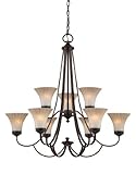 Aliza 9 Light Chain Hung Chandelier. 34-InchH; 34.5-InchD Uses (9) 100W Medium Base Bulbs Gradient Amber Mist Glass Palladian Bronze Finish Comes with 12-Feet of wire and 8-Feet of chain